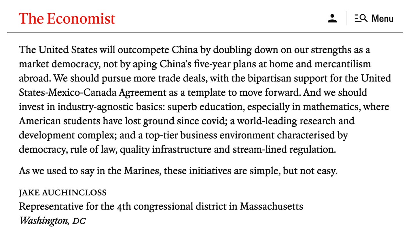 A letter to the editor of The Economist that I wrote as a Member of the Select Committee on China last term.